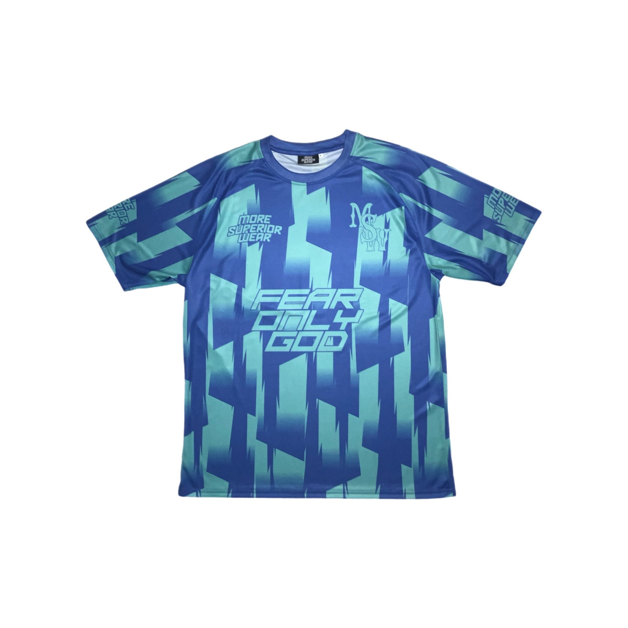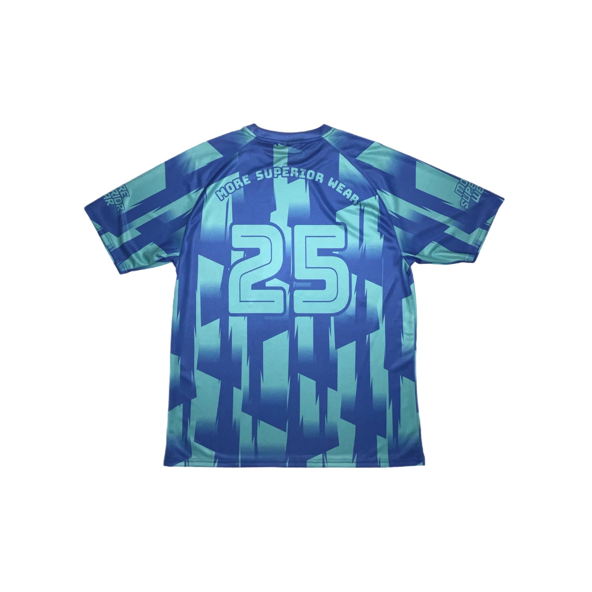 Bespoke 'lightning lines' pattern blue/teal football jersey